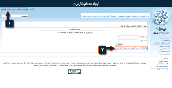 برای ایجاد حساب کاربری جدید، ابتدا برروی عبارت ورود به سامانه /ایجاد حساب کاربری جدید کلیک کنید.