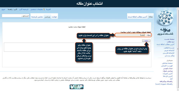 پیش از وارد کردن مقاله در سایت، باید برای مقاله یک عنوان انتخاب نمایید.