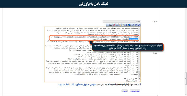 - آدرس سایت مقاله مذکور را کپی کنید.